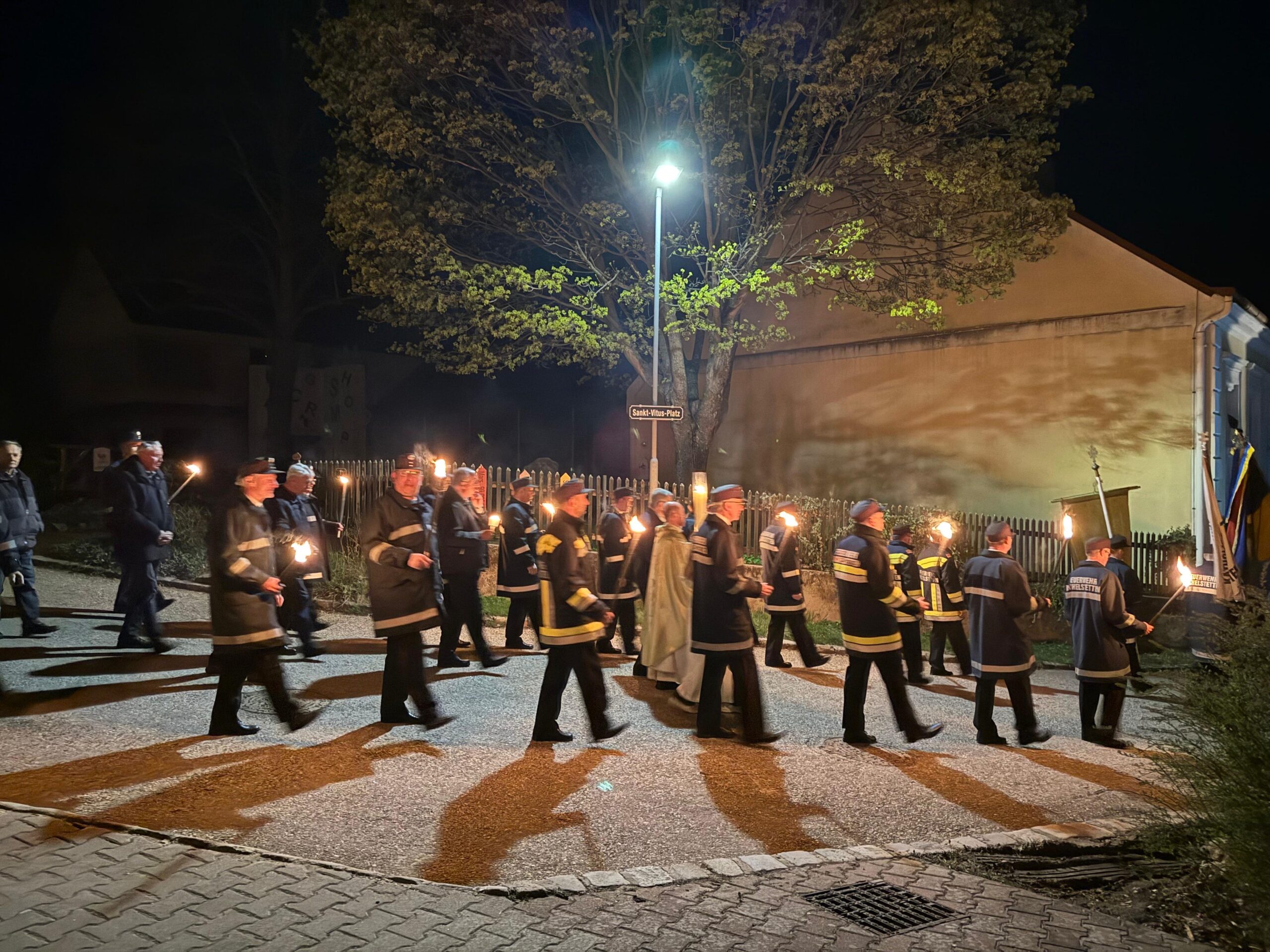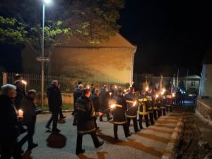 Im Anschluss an den Gottesdienst fand traditionsgemäß die Auferstehungsprozession durch den Ort statt. Begleitet von der Freiwilligen Feuerwehr und der Musik zog der Priester mit der neuen Osterkerze im Fackelschein durch Michelstetten. Die feierliche Prozession verlieh der Osterbotschaft eine besonders stimmungsvolle und würdige Atmosphäre und machte die Bedeutung dieses höchsten christlichen Festes für die gesamte Pfarrgemeinde sichtbar.