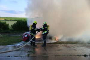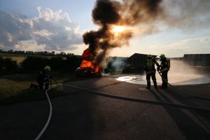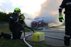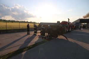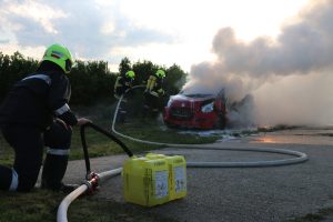 • Fahrzeugbrand: Ein Fahrzeug begann aus unerklärlichen Gründen zu brennen. Während das TLF4000 aus Asparn den Löschangriff durchführten, stellte das KLF aus Schletz die Wasserversorgung aus dem nahen gelegenen Teich sicher und versorgte das Tanklöschfahrzeug mit frischem Löschwasser.