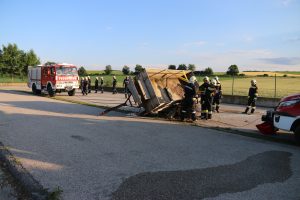• VU mit 1 eingeklemmten Person: Nach einem Unfall zwischen einem PKW und einem Traktoranhänger wurde eine Person im Fahrzeug eingeklemmt. Nachdem das Fahrzeug stabilisiert wurde, konnte die Person erfolgreich mittels dem hydraulischen Rettungssatz befreit werden.