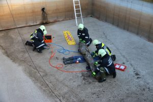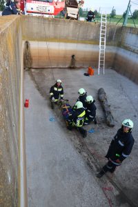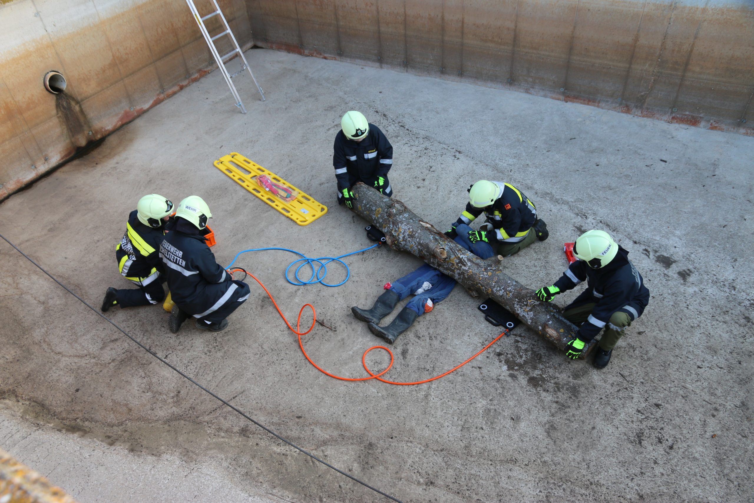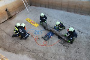 • Tiefenrettung einer verletzten Person: Bei arbeiten in einem Klärbecken wurde eine Person durch einen Unfall eingeklemmt. Nach der Erstversorgung wurde die Person durch die FF Michelstetten mittels Hebekissen befreit und via einer Seilbahn aus dem Becken gerettet.